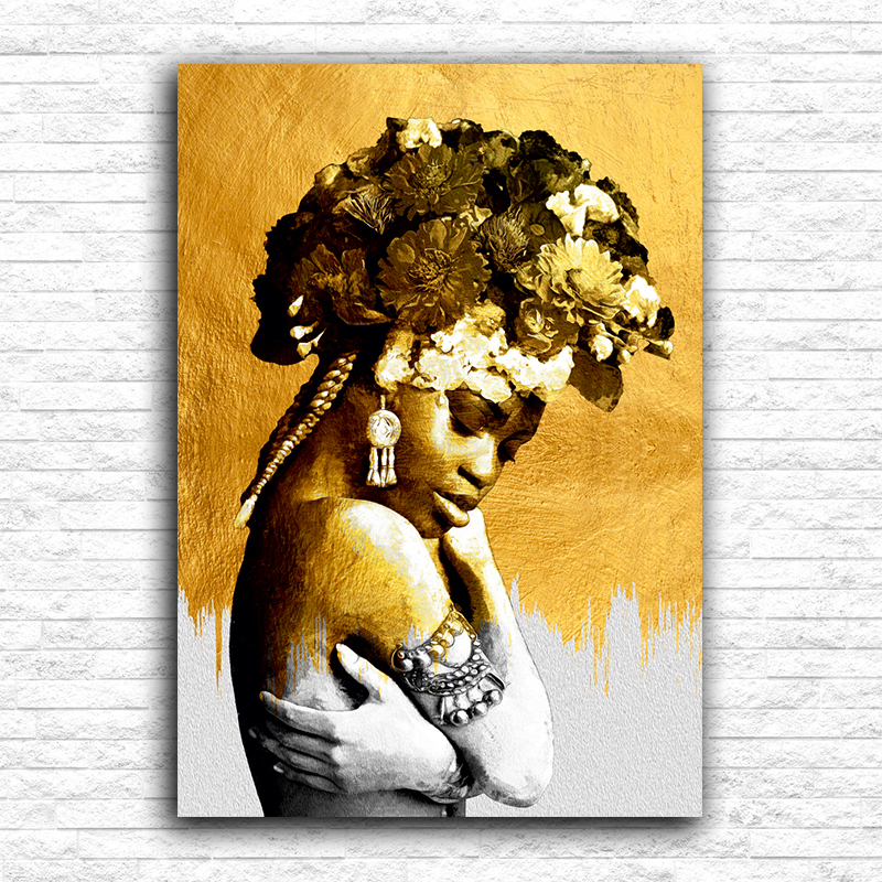 Zlatna devojka sa cvećem na kosi